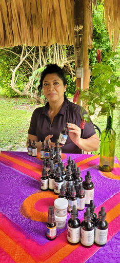 During your session together, you and Thelma connect/collect flowers and leaves with special prayers from around the garden. She massages the plant in water with special intention and the mixture infuses in the sunlight. This magical combination of traditional Maya healing plant, water, sunlight and prayers, cleanses your energy and blesses you with healing light.